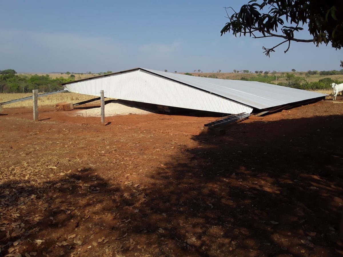 ventania destruiu barracão no interior de Água Boa
