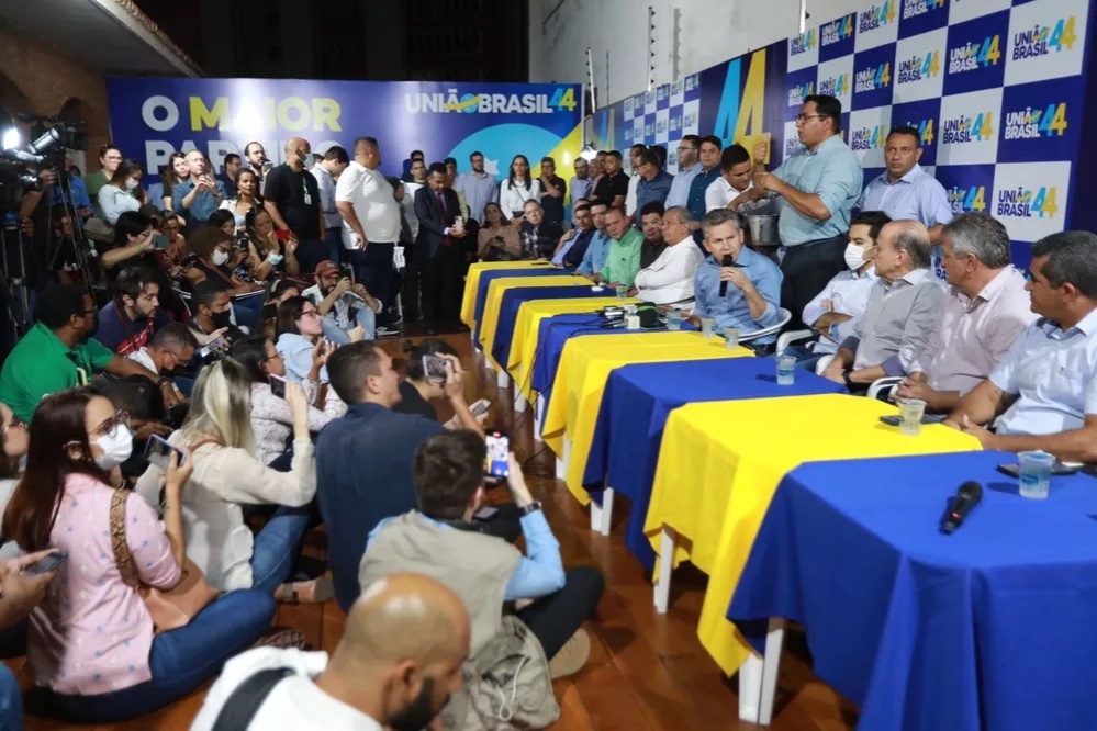 O governador de Mato Grosso, Mauro Mendes (União Brasil), anunciou a pré-candidatura à reeleição na sede do partido, em Cuiabá. Segundo ele, a decisão contou com o aval da primeira-dama, Virginia Mendes, e do restante da família, assim como de aliados políticos.
