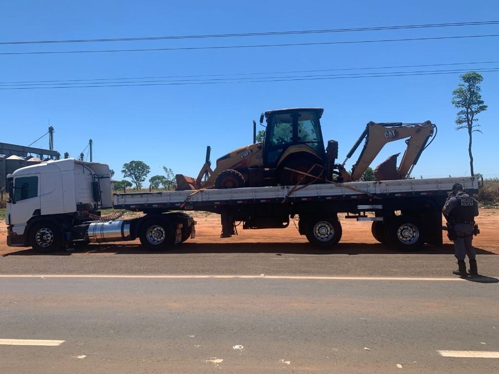 Uma retroescavadeira roubada em São Paulo foi recuperada nesta quarta (22) por policiais militares do 15º Batalhão, com apoio da Polícia Militar de Goiás, na rodovia MT-100, entre Alto Taquari e Alto Araguaia. Um homem foi preso em flagrante suspeito por receptação.