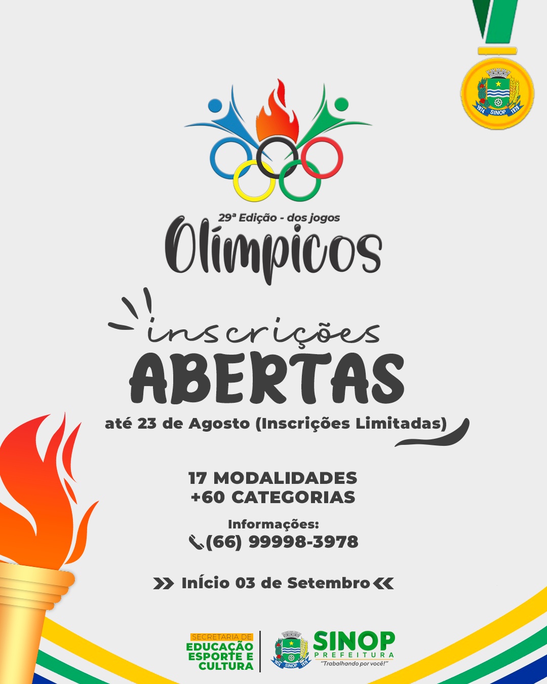 Abertas inscrições para os 29º Jogos Olímpicos de Sinop
