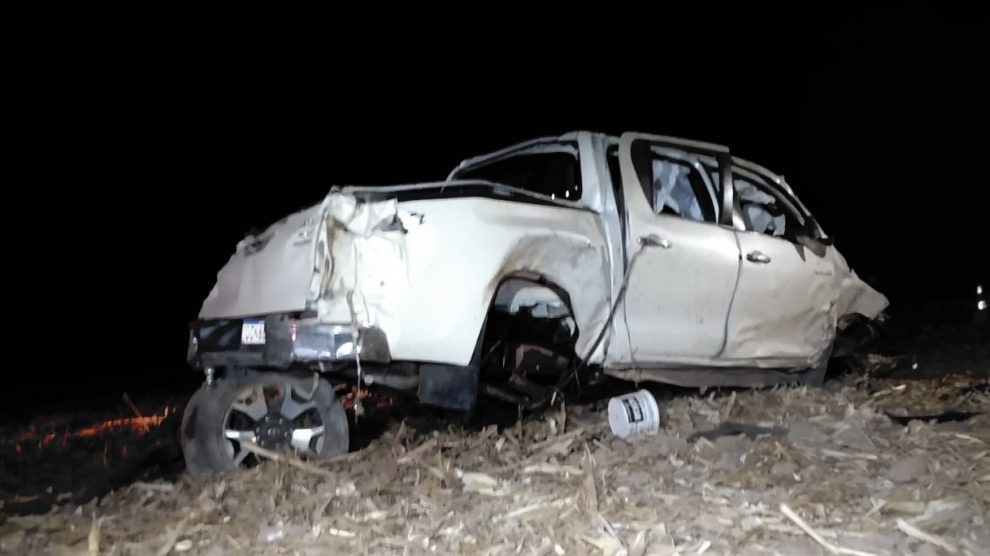 Hilux ficou destruída com o capotamento – Foto: Divulgação