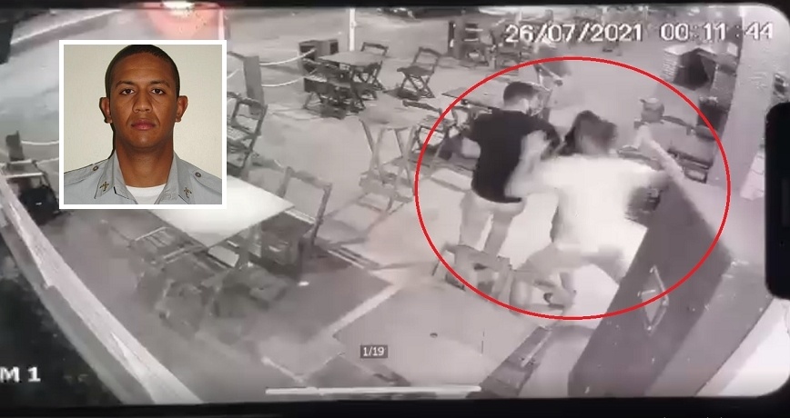 Câmeras de segurança mostram que o policial foi dar um soco em um dos homens e os dois partiram para cima do soldado, que não conseguiu se defender. Após alguns socos, o policial caiu ao chão e os criminosos continuaram a chutá-lo, principalmente na região da cabeça. Duas mulheres que os acompanhavam tentaram sem muito sucesso contê-los.