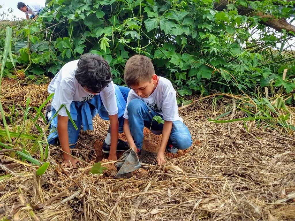 Após aulas teóricas, alunos fizeram plantio de 200 mudas de árvores frutíferas