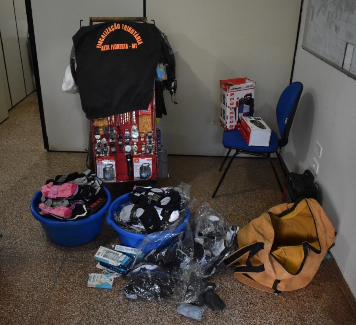 A outra abordagem aconteceu no centro do município, o comerciante ambulante de carteiras, cintos, relógios, caixas de som e outros produtos do gênero, se apresentou como morador de Sinop, já reincidente com multas a serem pagas, teve a mercadoria retida até o pagamento da multa, também no R$ 388,20.