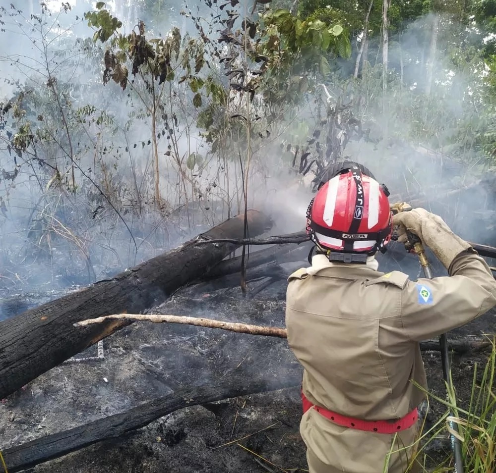 Equipes dos bombeiros estão monitorando o incêndio no Parque Estadual Cristalino II, em Novo Mundo, nesta semana, após controlar as chamas que atingem a região desde domingo (14).