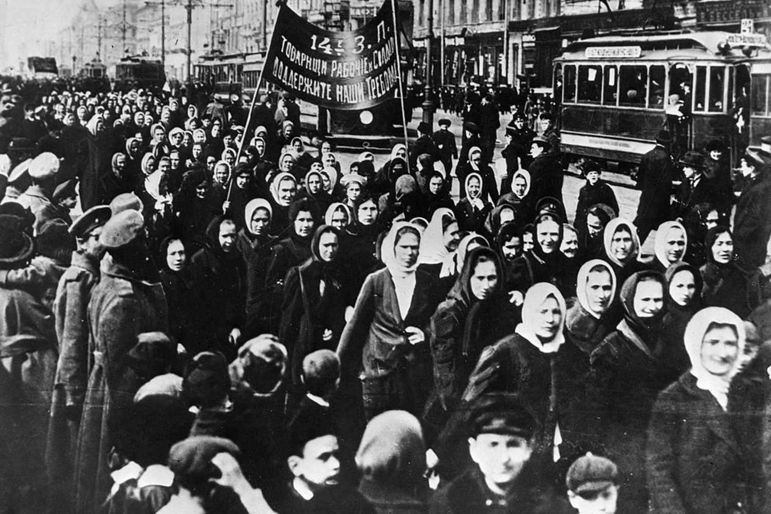Trabalhadoras russas protestam em fevereiro de 1917 em São Petersburgo – Foto: Divulgação