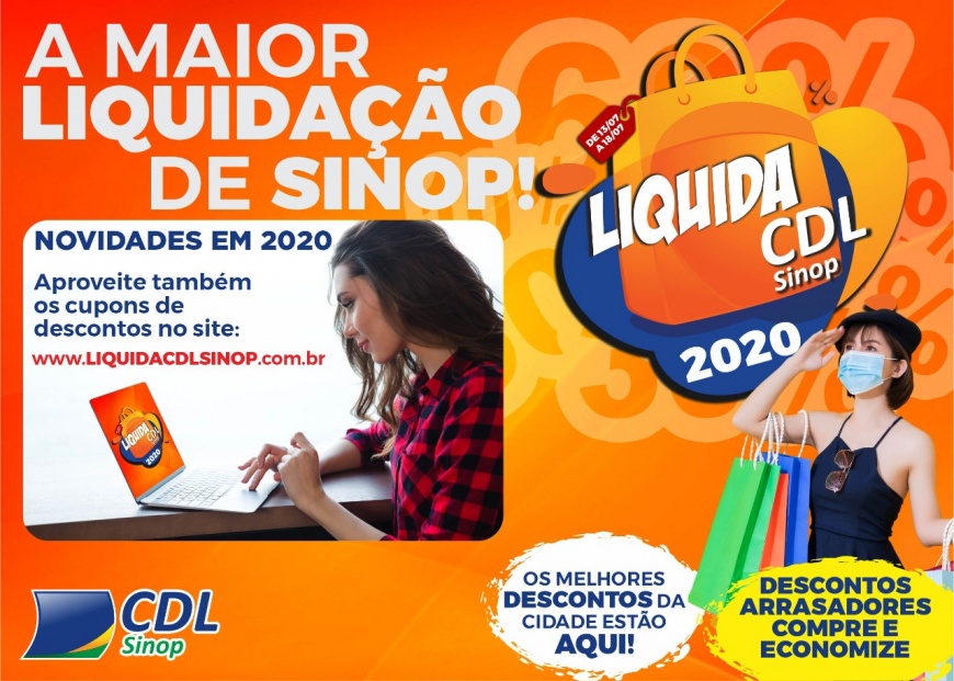 Está sendo realizado até o próximo dia 18 o Liquida CDL Sinop, mas num formato diferente este ano, devido à pandemia do novo coronavírus. A liquidação volta ao seu formato original, como era realizado em 2004, com as lojas fazendo as promoções dentro de seus estabelecimentos. Os empresários estão liquidando parte de seus estoques ou a loja toda, com descontos de até 70%.