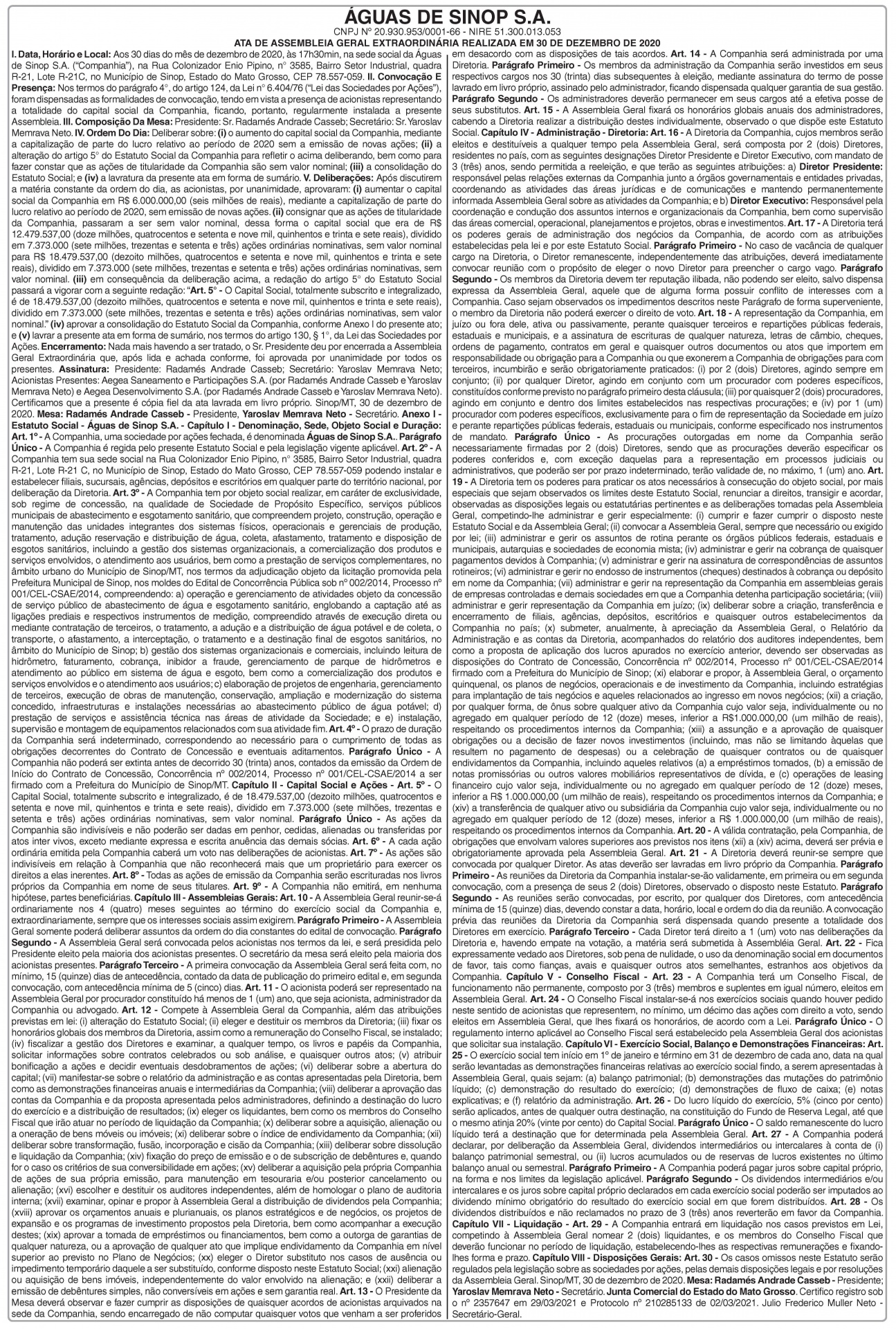 ATA DE ASSEMBLEIA GERAL EXTRAORDINÁRIA REALIZADA EM 30 DE DEZEMBRO DE 2020