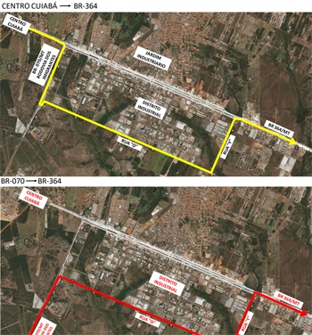 Com isso, um trecho da BR-070 – do viaduto do entroncamento da BR-364 com a rodovia dos Imigrantes (km 496) até o retorno em nível (km 497) - funcionará em mão única, sentido Cuiabá/Várzea Grande.