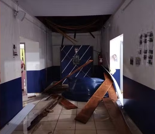 Uma caixa d'água caiu dentro da Escola Estadual Francisco Saldanha Neto na noite de terça (21) em Tabaporã. Os funcionários que estavam no local se assustaram com o acidente. Ninguém se feriu.