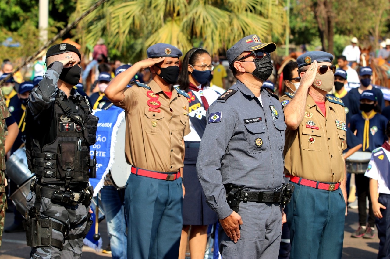 A bandeira do município foi hasteada pelo prefeito Roberto Dorner; as bandeiras do Brasil, de Mato Grosso e da Escola Municipal de Educação Básica (EMEB) Ana Cristina de Sena foram hasteadas pelo Exército Brasileiro, Legislativo Municipal e aluno da rede pública municipal, respectivamente.