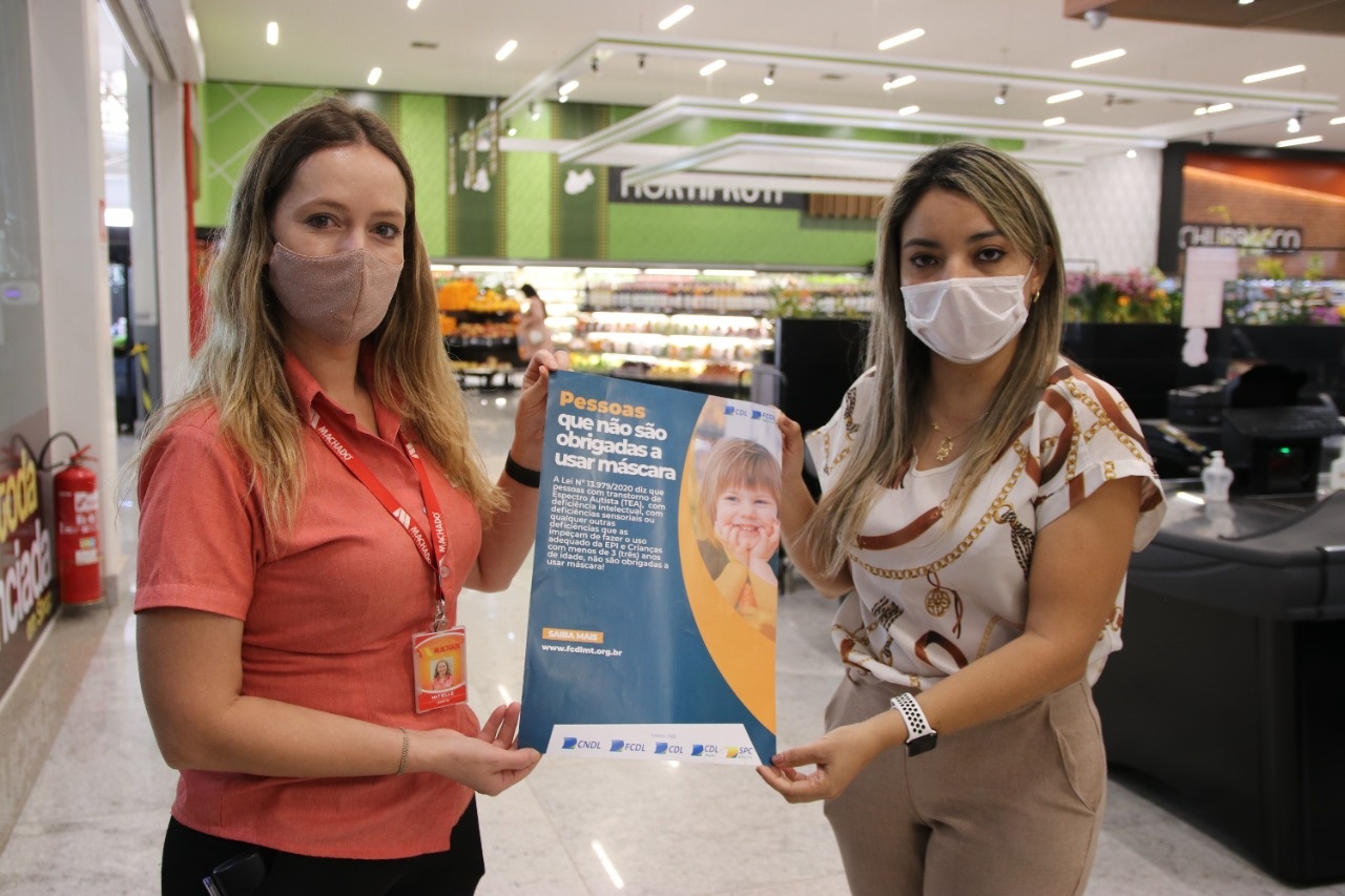 “Estamos atendendo a um apelo da Federação das Câmaras de Dirigentes Lojistas (FCDL/MT), que recebeu uma notificação do Ministério Público Estadual, para que se dissemine a informação da Lei e não ocorram problemas neste período de pandemia em que a máscara é obrigatória é essencial, mas existe aqueles que são impossibilitados do uso. Agradecemos a todos que nos receberam e foram receptivos para expor o cartaz”, comentou a gerente da CDL, Vanusa Ires.