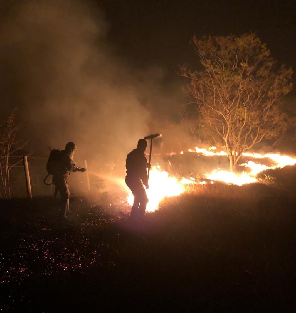 Brigadistas montaram aceiros ao lado de trilha para tentar evitar o avanço das chamas