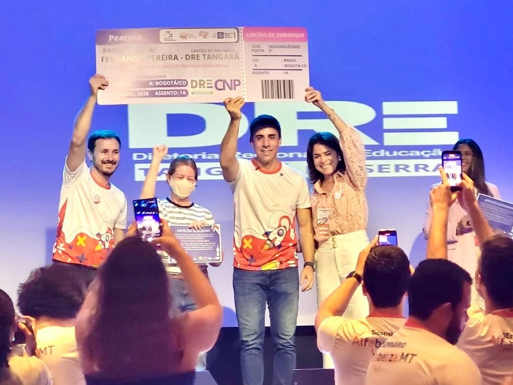 Entre os destaques, a professora Fernanda recebeu o Prêmio Mais Inglês: Boas Práticas no Ensino de Inglês – Edição 2025. A premiação reconhece iniciativas inovadoras aplicadas em sala de aula.