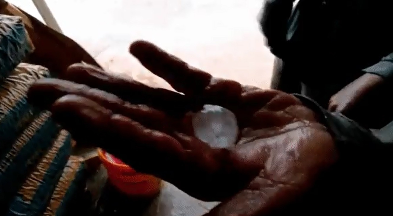 Moradores pegam pedras de gelo durante chuva com vento