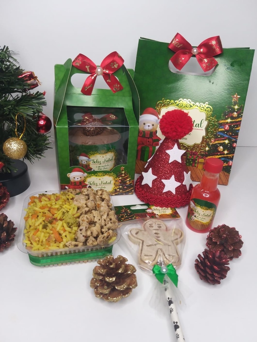 Depois de ter seu cachorro internado com a doença do carrapato, a confeiteira Joselaine Oliveira, 41 anos, teve que mudar a alimentação dele durante e pós-recuperação. Isso motivou ela a ampliar a produção para atender cães e gatos com alimentação natural. Agora, para o período de Natal, ela lançou uma ceia natalina para os pets.