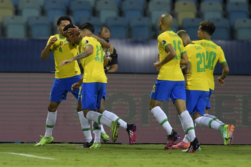 Seleção comemora gol de Éder Militão contra o Equador — Foto: Pedro Vilela