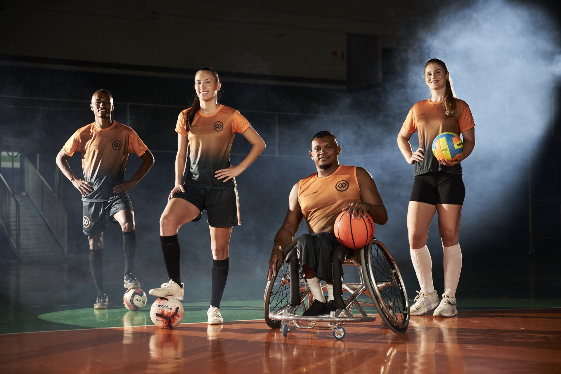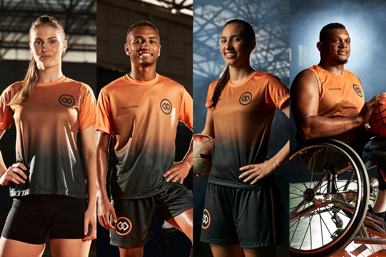 Leozinho (futsal), Camila Soares (futebol), Franciane (vôlei) e Anderson (basquete) estrelam nova campanha – Foto: Assessoria