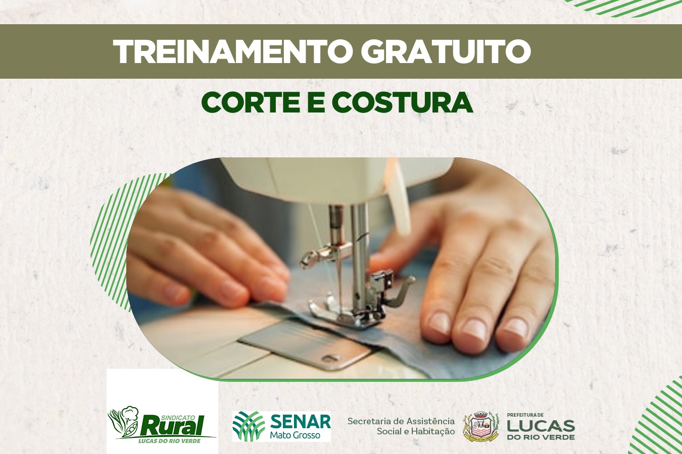 A Secretaria de Assistência Social e Habitação de Lucas do Rio Verde em parceria com o Sindicato Rural e o Serviço Nacional de Aprendizagem Rural de Mato Grosso (Senar-MT), está oferecendo uma nova oportunidade de qualificação profissional gratuita na área de corte e costura.