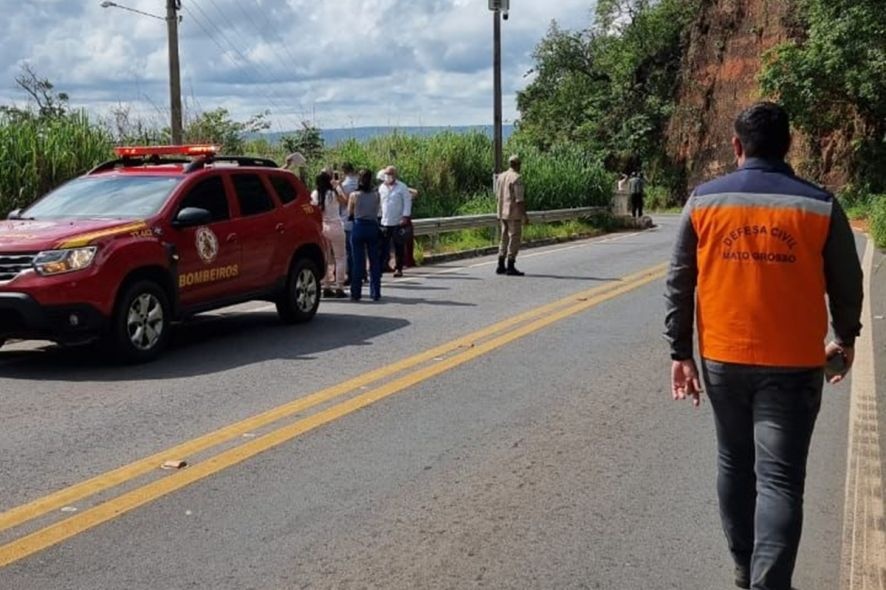 A Defesa Civil de Mato Grosso e outros órgãos estaduais se reuniram nesta semana para avaliar o risco de desprendimento de rocha e movimento de massa no trecho do Portão do Portão do Inferno, na MT-251. Em novembro de 2021, o local já havia apresentado um pequeno deslizamento de terra após a região ser atingida por fortes chuvas.