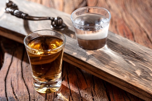 A indicação para consumir os destilados seriam os copos de cachaça. Muitos podem confundir os copos desta bebida com os de shot, que em português significa tiro ou chute, indicado para classificar o consumo do líquido em um só gole.