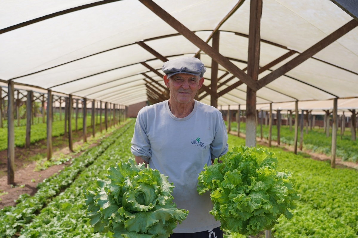 Juraci Turcato veio para Lucas com a família e juntos eles plantam hortaliças e comercializam no município desde o final da década de 90. A produção começou pequena e hoje a chácara Girassol, às margens da MT-449, abastece as prateleiras de grandes supermercados da cidade.