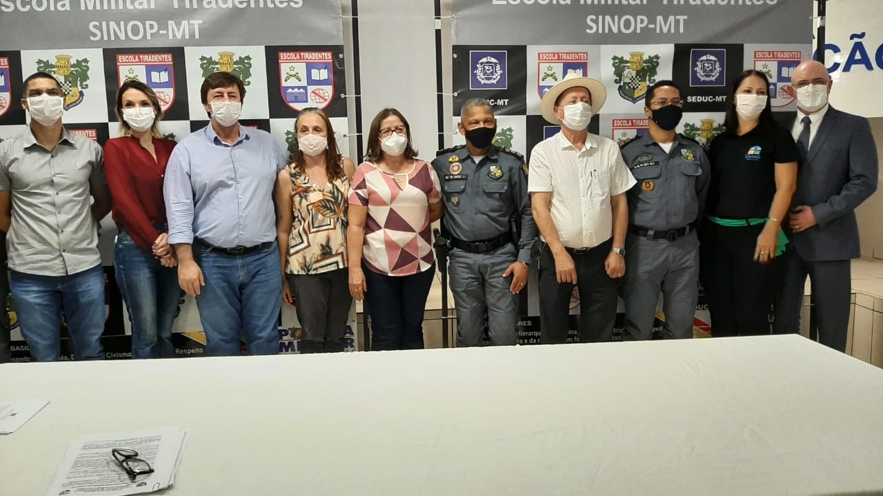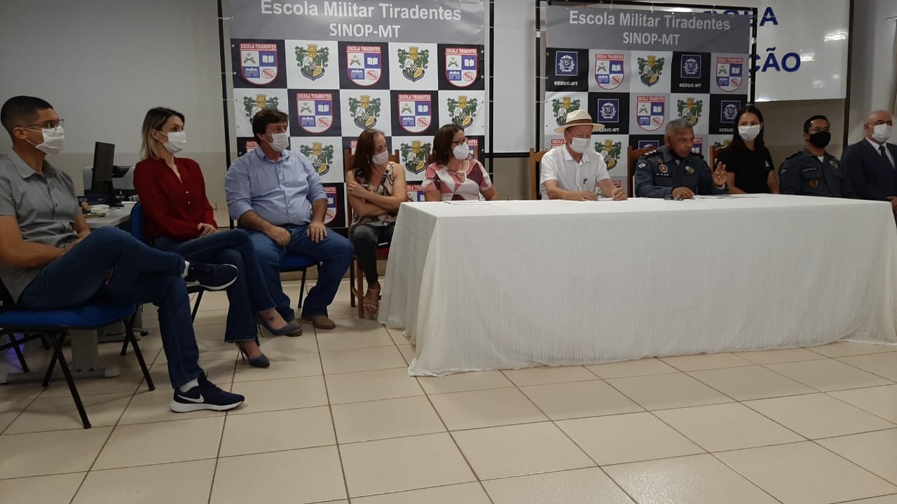 O prefeito de Sinop, Roberto Dorner (Republicanos), e a secretária de Educação, Sandra Donato, acompanharam na manhã desta quinta (5) o lançamento oficial do edital de seleção de professores e alunos da Escola Estadual Militar Tiradentes 2º Sargento PM Claudemir França Maciel, que aconteceu na Diretoria Regional de Ensino de Sinop.