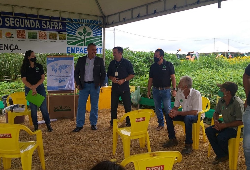 A feira foi realizada na semana passada, na MT-326, e a Empaer contou com uma área de 805 metros quadrados divididos entre a área do estande e as plantações de algodão, girassol, gergelim, cinco tipos de feijão, chia, mamona, painço, cartamo, amendoim, grão de bico, arroz, crotalaria, três tipos de pastagens, sorgo, milho, pipoca e café.