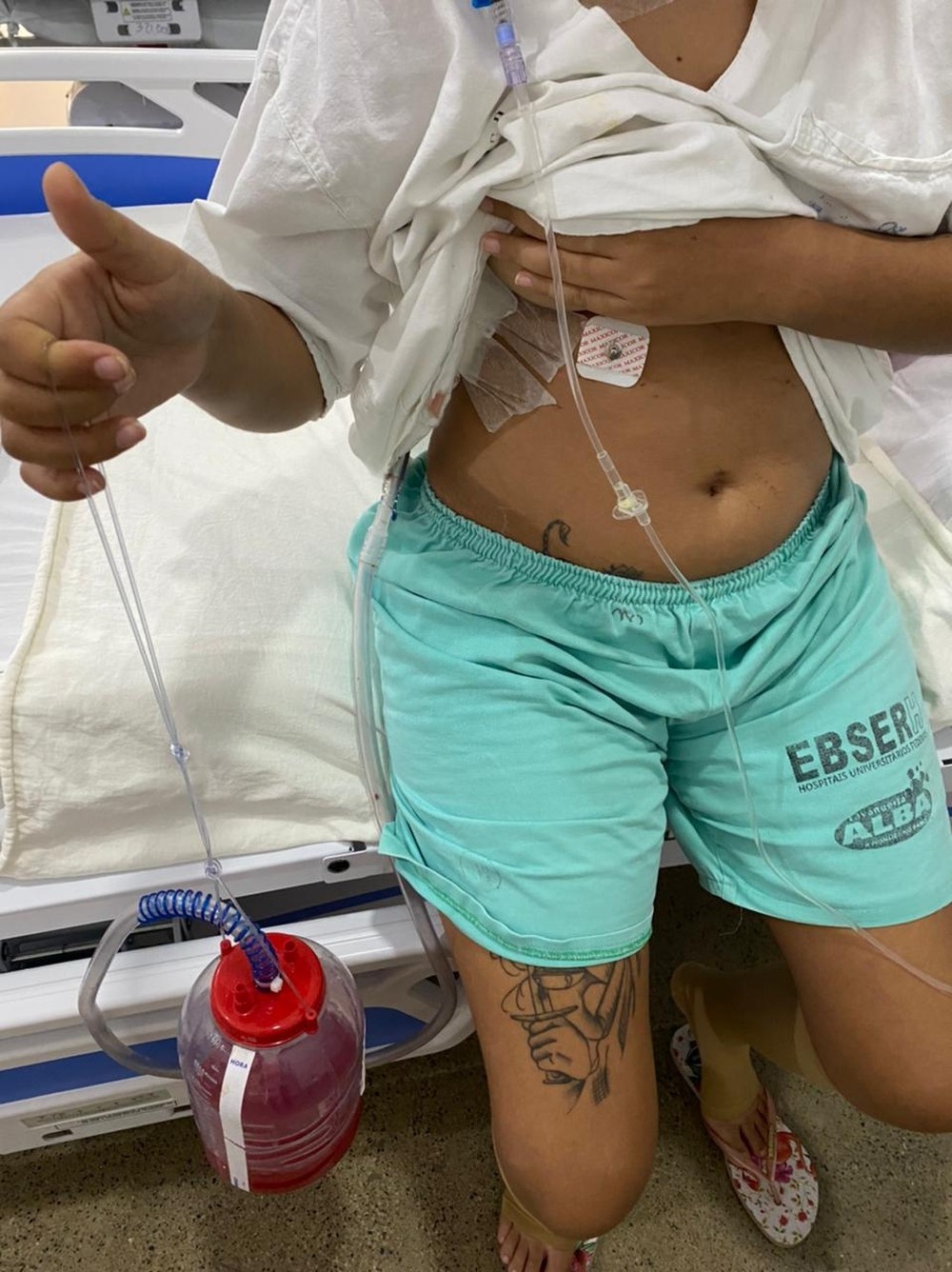 Lívia ficou usando dreno devido à cirurgia — Foto: Arquivo pessoal