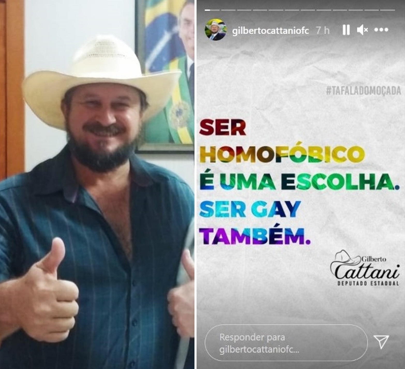 Tem gente que calado é um poeta, não é? Para certas menções, esta comparação serviria muito bem ao deputado estadual Gilberto Cattani (PSL), que realizou uma infeliz postagem, considerada homofóbica nas redes sociais, na quarta (19). No post, ele afirma que “ser homofóbico é uma escolha, ser gay também”. Cattani assumiu a vaga deixada por Silvio Fávero, que morreu em decorrência da Covid-19 em março deste ano.