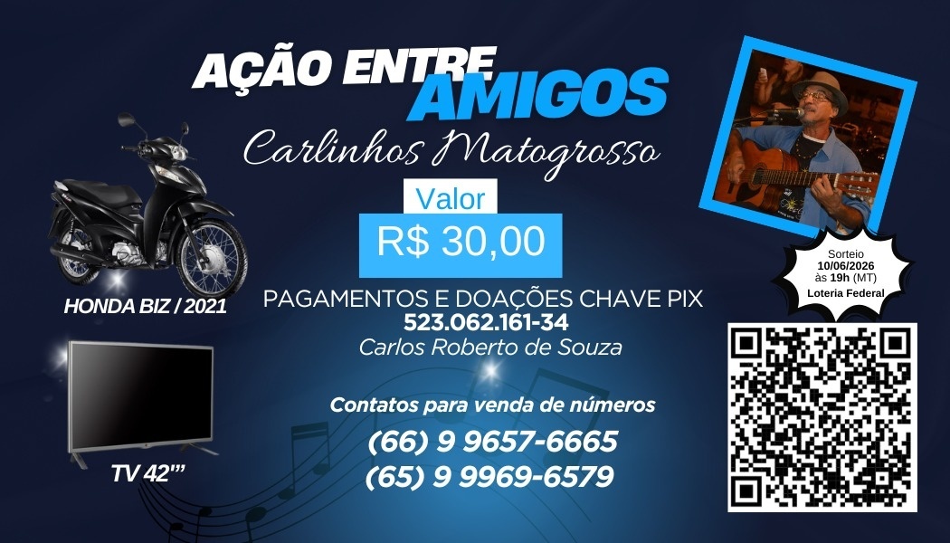 Para ajudar a custear o tratamento, familiares e amigos organizaram uma ação entre amigos, com sorteio de uma Honda Biz 2021 e uma TV de 42 polegadas. Os números podem ser adquiridos de forma online, no valor de R$ 30,00, por meio da chave Pix 523.062.161-34, em nome de Carlos Roberto de Souza. O sorteio será realizado no dia 10 de junho, às 19h, com base nos resultados da Loteria Federal.