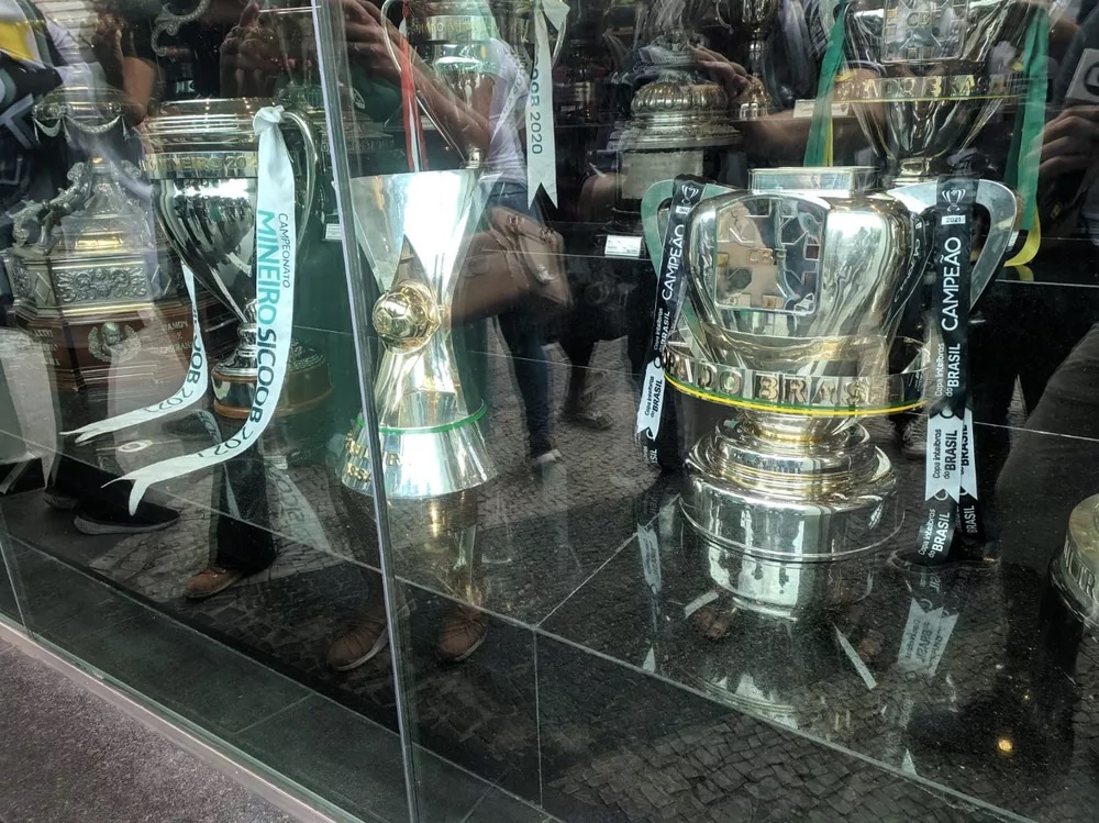 Galo junta taças da Copa do Brasil, do Brasileiro e do Mineiro em galeria de troféus