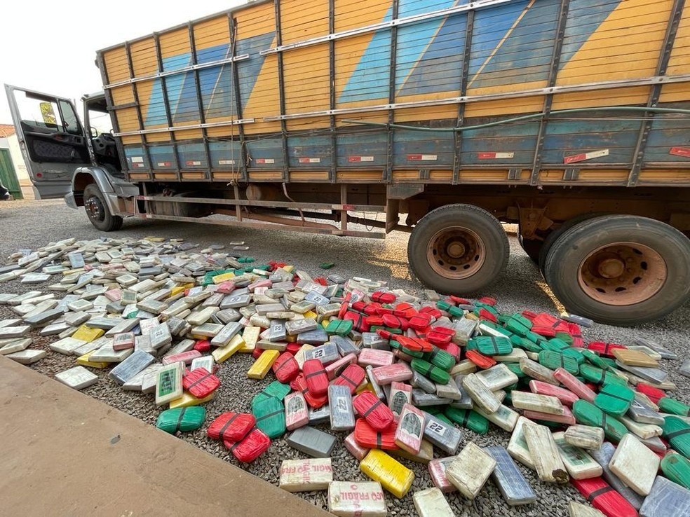 Como o motorista aparentou nervosismo, as equipes acompanharam o veículo até o local onde os animais seriam entregues e após descarregar o caminhão, os policiais encontraram 976 pacotes de cloridrato/pasta base de cocaína em um fundo falso.