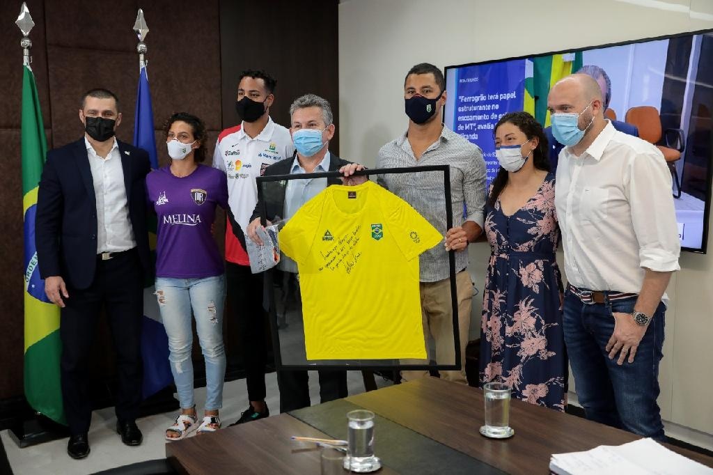 Na última quarta (18), o governador Mauro Mendes e o secretário de Cultura, Esporte e Lazer, Beto Dois a Um, receberam os atletas de Mato Grosso que representaram o Estado nas Olimpíadas de Tóquio.