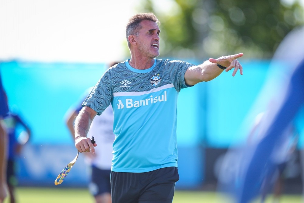 Mancini comanda último treino do Grêmio para o jogo contra o São Paulo— Foto: Lucas Uebel