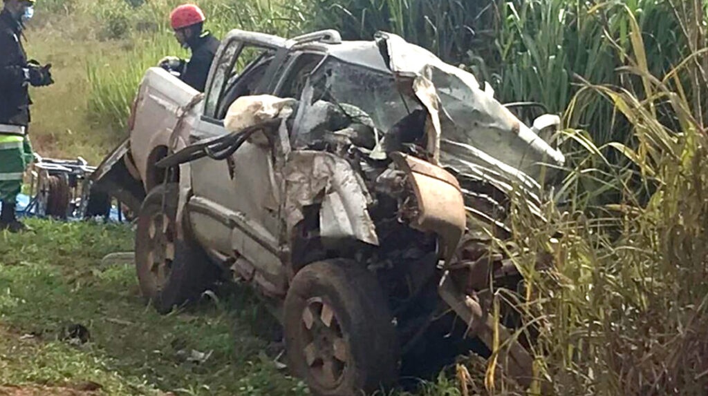 Com o impacto, a S10 ficou completamente destruída, a caixa de câmbio chegou a ser arrancada e parou às margens da via.