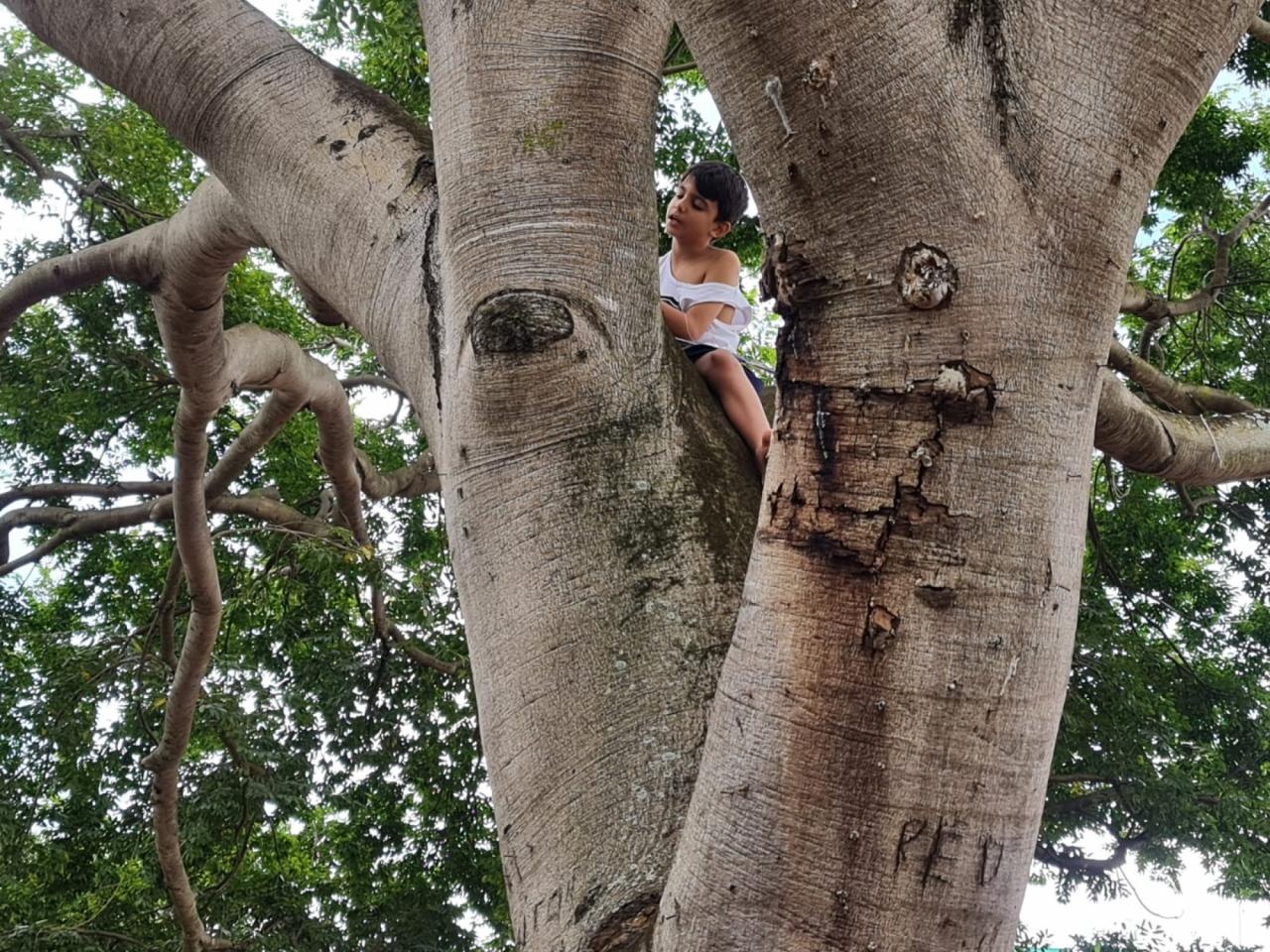 No sábado (5), uma das primeiras cenas foi gravada na linda árvore ao lado do Paço Municipal, com o ator mirim Saulo Reichert Fernandes.