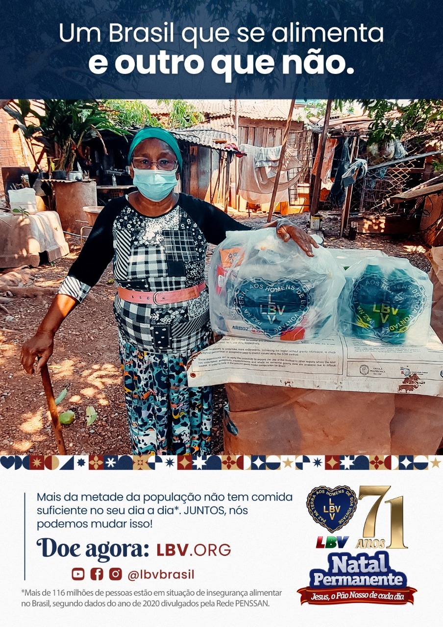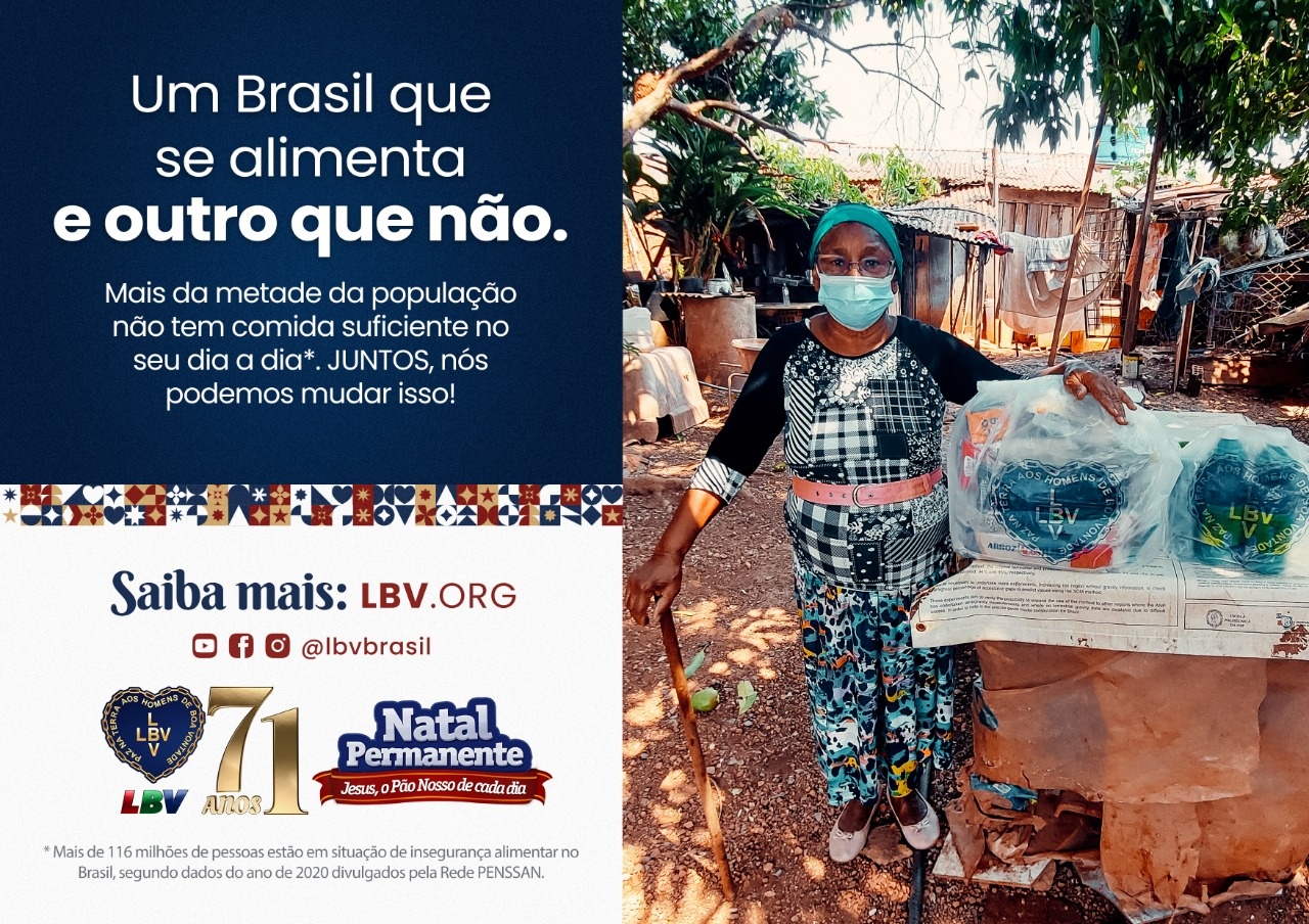 Milhares de pessoas não têm o que comer: falta-lhes o alimento básico. Por isso, além de todo o trabalho que realiza ao longo do ano, a Legião da Boa Vontade também promove a sua tradicional campanha Natal Permanente da LBV — Jesus, o Pão Nosso de cada dia!, com o objetivo de fortalecer esse espírito de Solidariedade e angariar doações em prol de quem mais precisa.