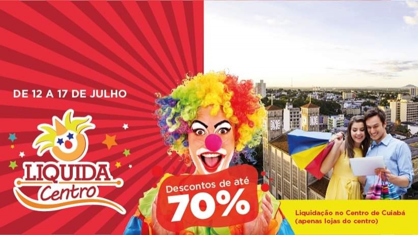 Nesta semana, de 12 a 17 de julho, as lojas de confecção, calçados, eletrodomésticos, bares e restaurantes do centro de Cuiabá voltam a ofertar produtos com até 70% de desconto. As promoções fazem parte do Liquida Centro 2021, evento que já faz parte do calendário do município, realizado pelo Sindicato do Comércio Varejista de Tecidos de Mato Grosso (Sincotec-MT).