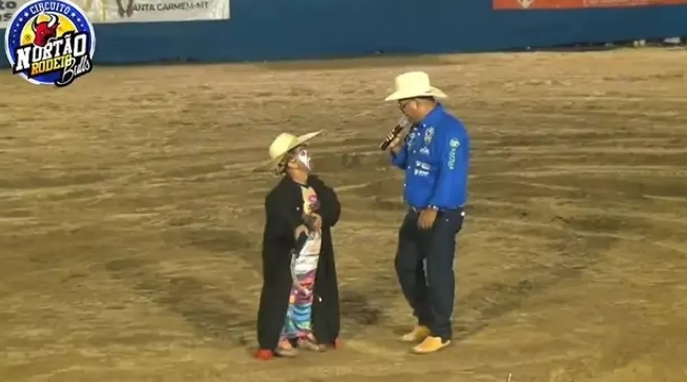 Depois disso, enquanto um trecho de música com letra homofóbica toca na arena, o palhaço “mata” uma pessoa vestida de onça. Em nota à imprensa, o Circuito Nortão de Rodeio Bulls disse que a fala do profissional contratado para o evento não representa a opinião e os valores da empresa.