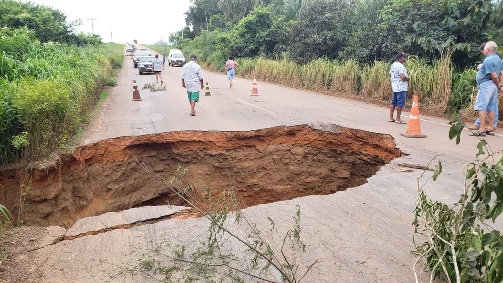 MT-423 está interditada há uma semana após cratera gigante se abrir na pista