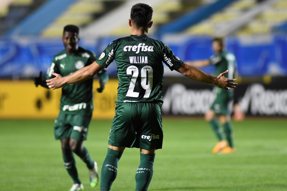 Willian comemora gol do Palmeiras contra o Bolívar — Foto: Conmebol