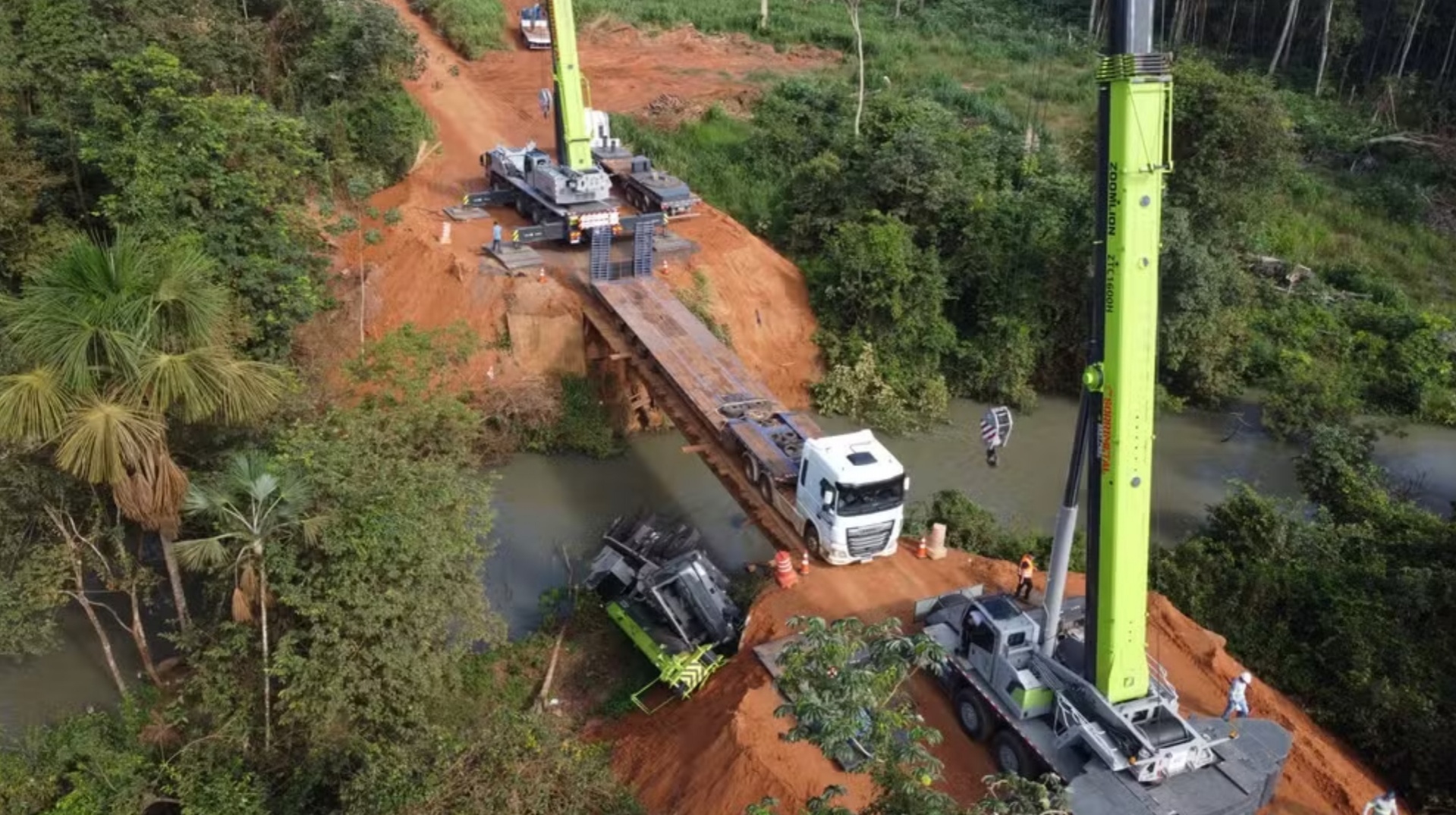 A ponte de madeira em que um guindaste caiu e um caminhão teve pane foi liberada quinta (5) após uma semana desde o início da operação de retirada dos veículos no Córrego Grande, conhecido como "Corgão", na MT-560, entre Sorriso e Tapurah.