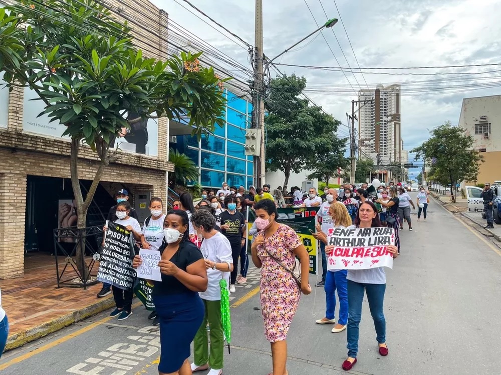 Membros do Fórum das Entidades da Enfermagem de Mato Grosso realizaram uma manifestação pelas ruas de Cuiabá na terça (8) para cobrar a aprovação do projeto que prevê um piso salarial nacional para a categoria. A proposta tramita na Câmara dos Deputados. Com faixas e cartazes, os profissionais saíram do Conselho Regional de Enfermagem (Coren-MT) em uma caminhada até a Praça 8 de Abril.