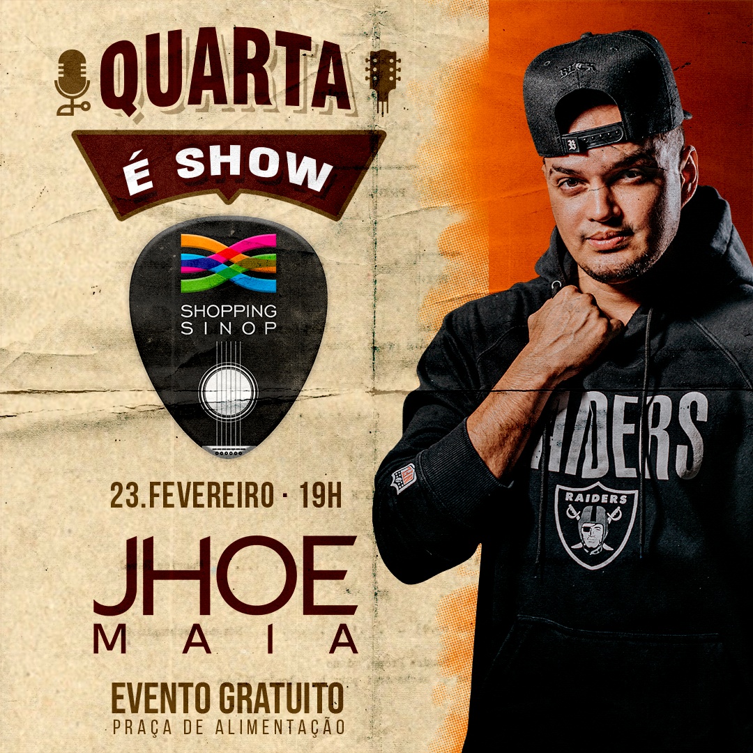 A segunda edição do Quarta é Show traz uma atração regional ao Shopping Sinop: o cantor sinopense Jhoe Maia. A apresentação é gratuita e inicia às 19h na Praça de Alimentação.