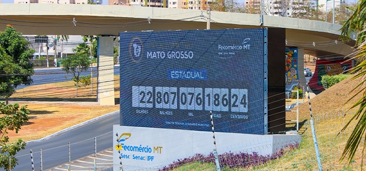 O Impostômetro da Fecomércio-MT, divulgado pelo telão da entidade, mostra a quantia de R$ 22,8 bilhões em impostos, taxas e contribuições pagos pelos mato-grossenses até o dia 10 de agosto. A arrecadação no estado corresponde a 1,25% do total recolhido no país, que já atingiu a marca de R$ 1,5 trilhão pago aos governos federal, estaduais e municipais.