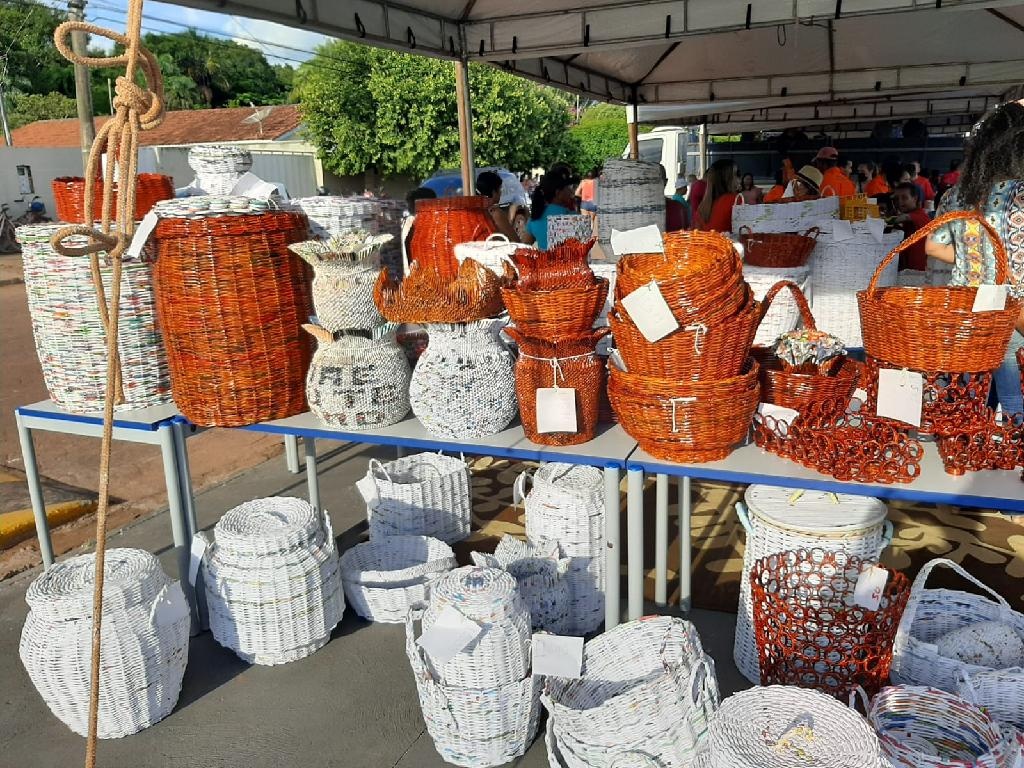 Por meio da doação de livros didáticos e revistas, os recuperandos da unidade dedicam parte de seus dias à produção de artesanatos com estes materiais recicláveis, que vão desde cestas decorativas, bolsas e até mesmo fruteiras.
