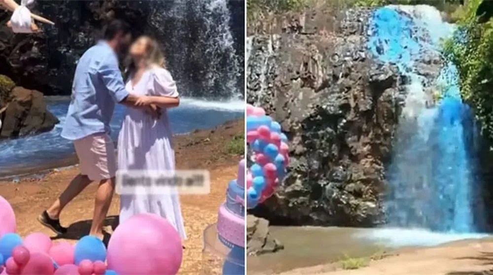 O evento foi realizado no domingo (25) passado em uma propriedade particular. Imagens publicadas por pessoas que participaram da festa – apagadas posteriormente, após repercussão negativa – mostram o momento em que a água da cachoeira fica azul para anunciar a chegada de um menino. Eles também usam fumaça colorida e soltam confetes.