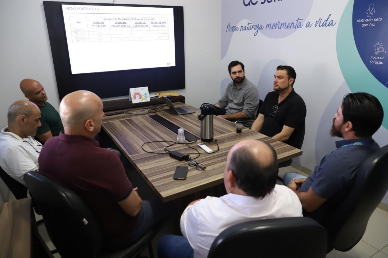 Representantes da Prefeitura de Sorriso participaram de uma reunião na sede da Concessionária Águas de Sorriso (Aegea-MT) para conhecer os projetos previstos pela empresa para os próximos anos, com foco na expansão do esgotamento sanitário no Município.