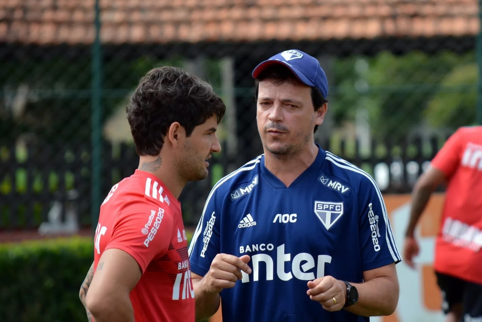 Diniz conversa com Pato em treino